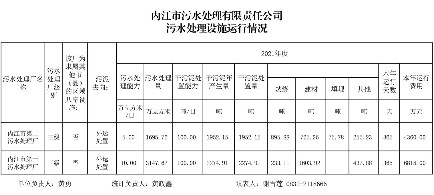 內(nèi)江市污水處理有限責任公司污水處理設施運行情況