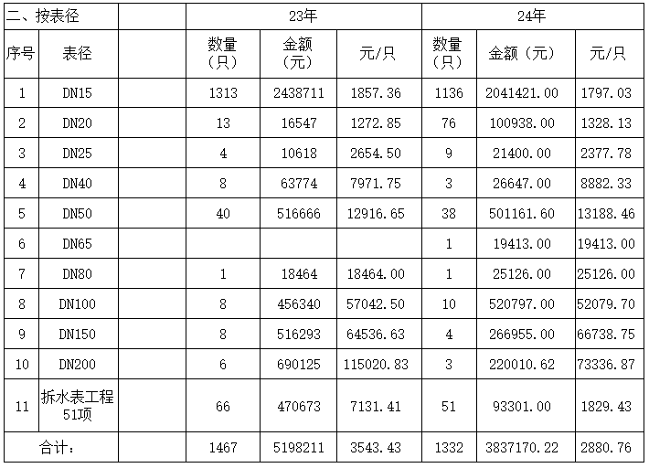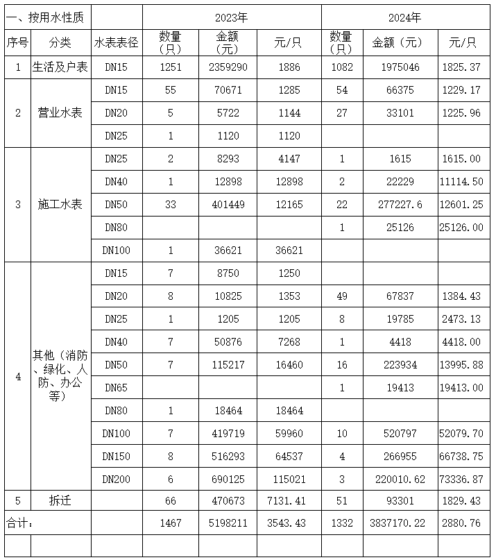 內(nèi)江市水務有限責任公司2023-2024供水安裝平均價格公示