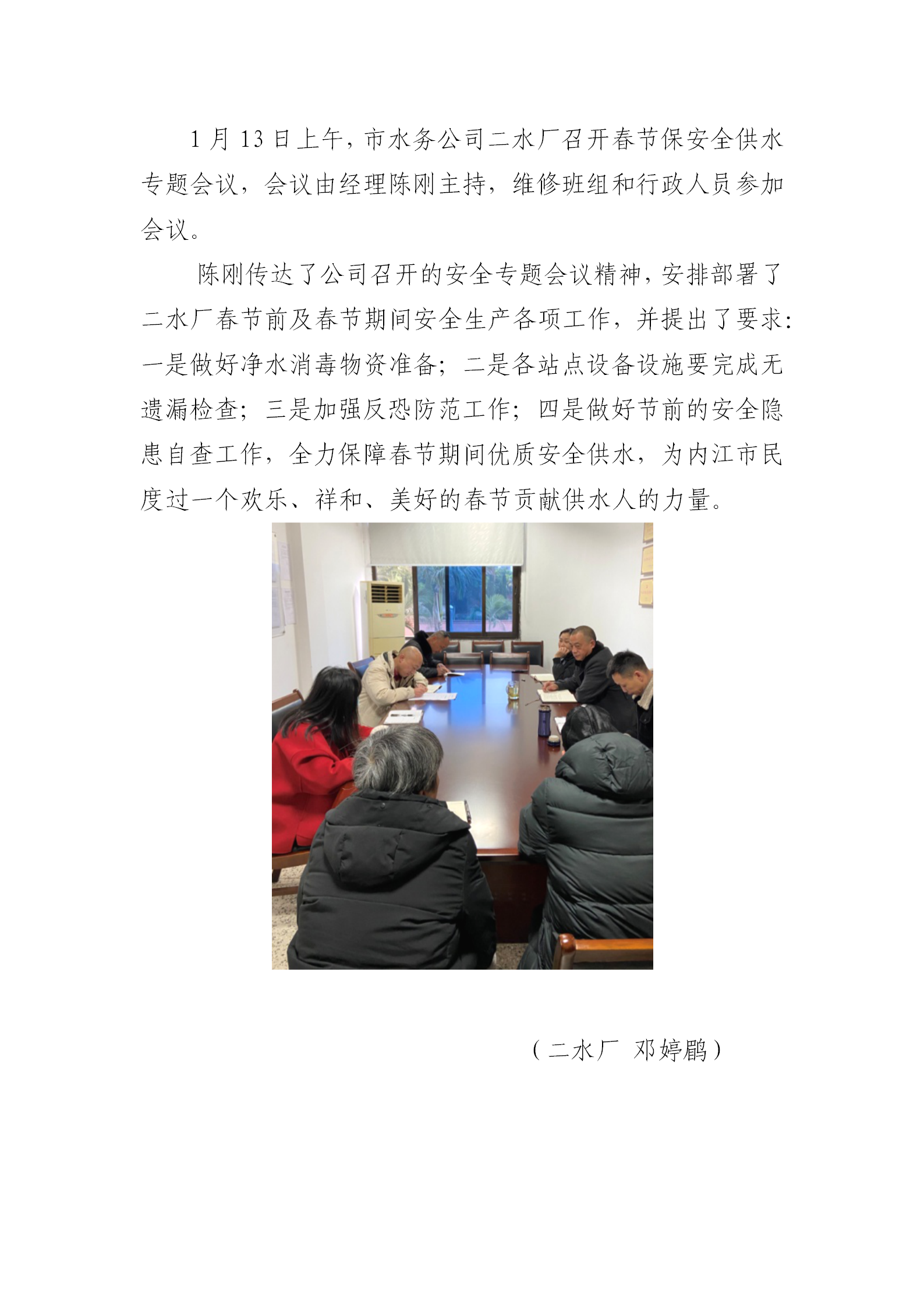 二水廠召開春節(jié)安全保供專題會