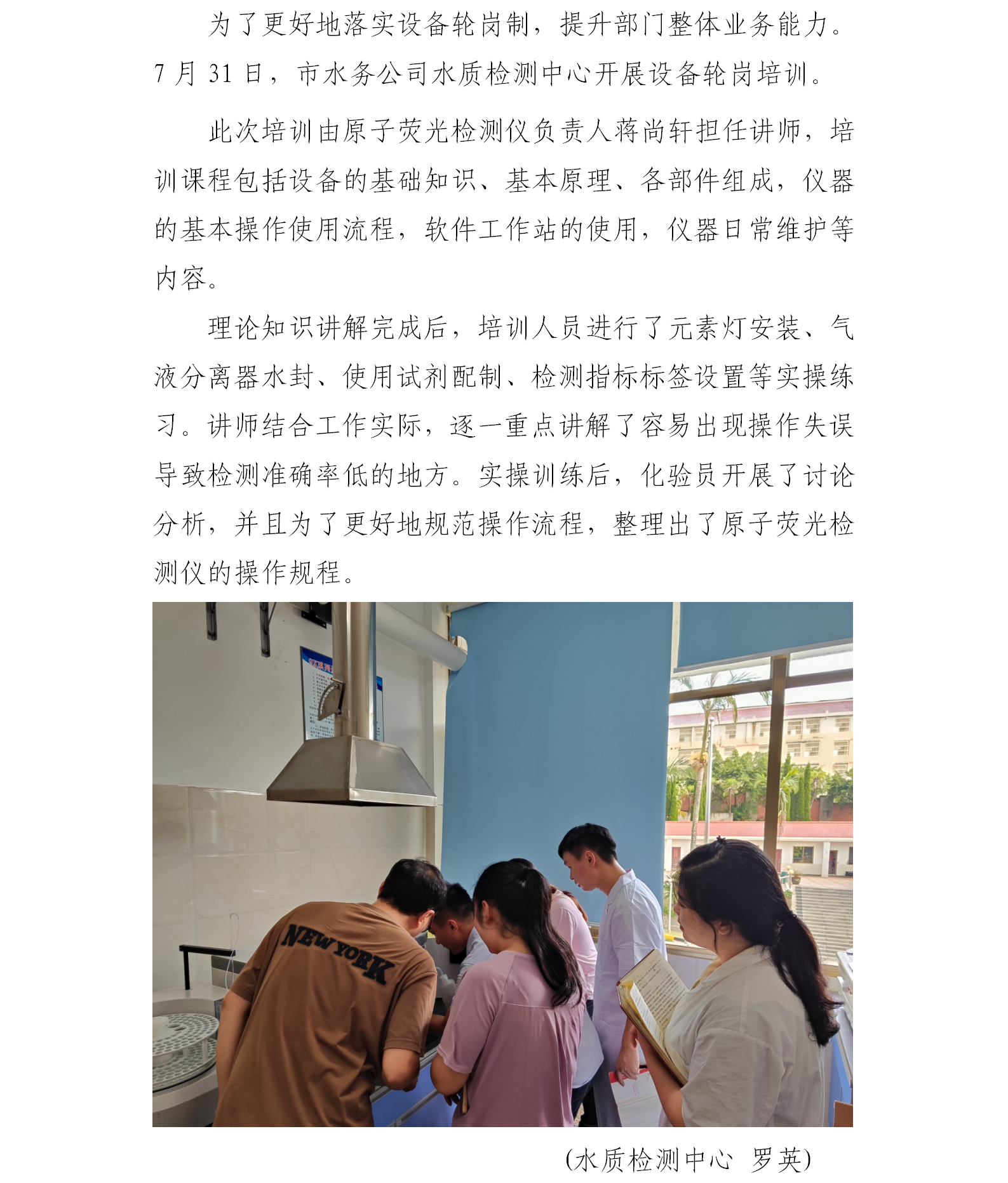 水質(zhì)檢測(cè)中心開展設(shè)備輪崗培訓(xùn)