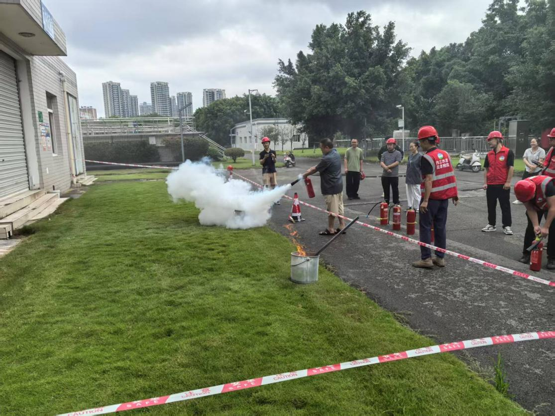 演練現(xiàn)場,市污水處理公司副經(jīng)理李昊謙向參演人員詳細講解了火災(zāi)風(fēng)險及滅火器的使用要點。隨后,模擬火情發(fā)生,員工們迅速響應(yīng),嚴(yán)格按照規(guī)范操作滅火器,成功撲滅“火勢”。整個過程緊湊有序,有效檢驗了應(yīng)急預(yù)案的可行性,進一步強化了員工的火災(zāi)防范意識和應(yīng)急處置技能。