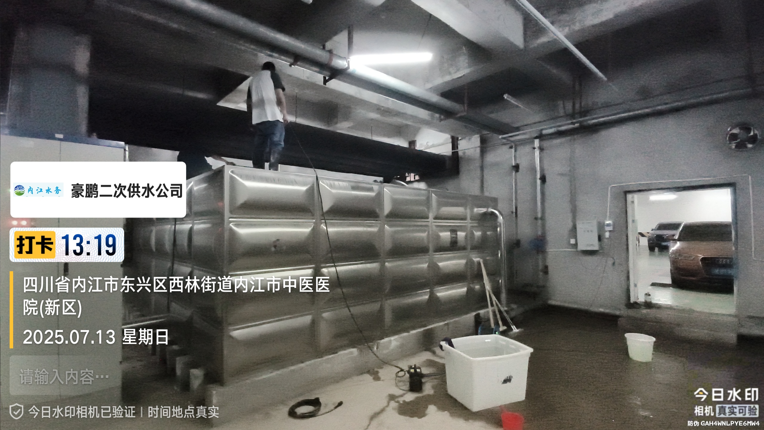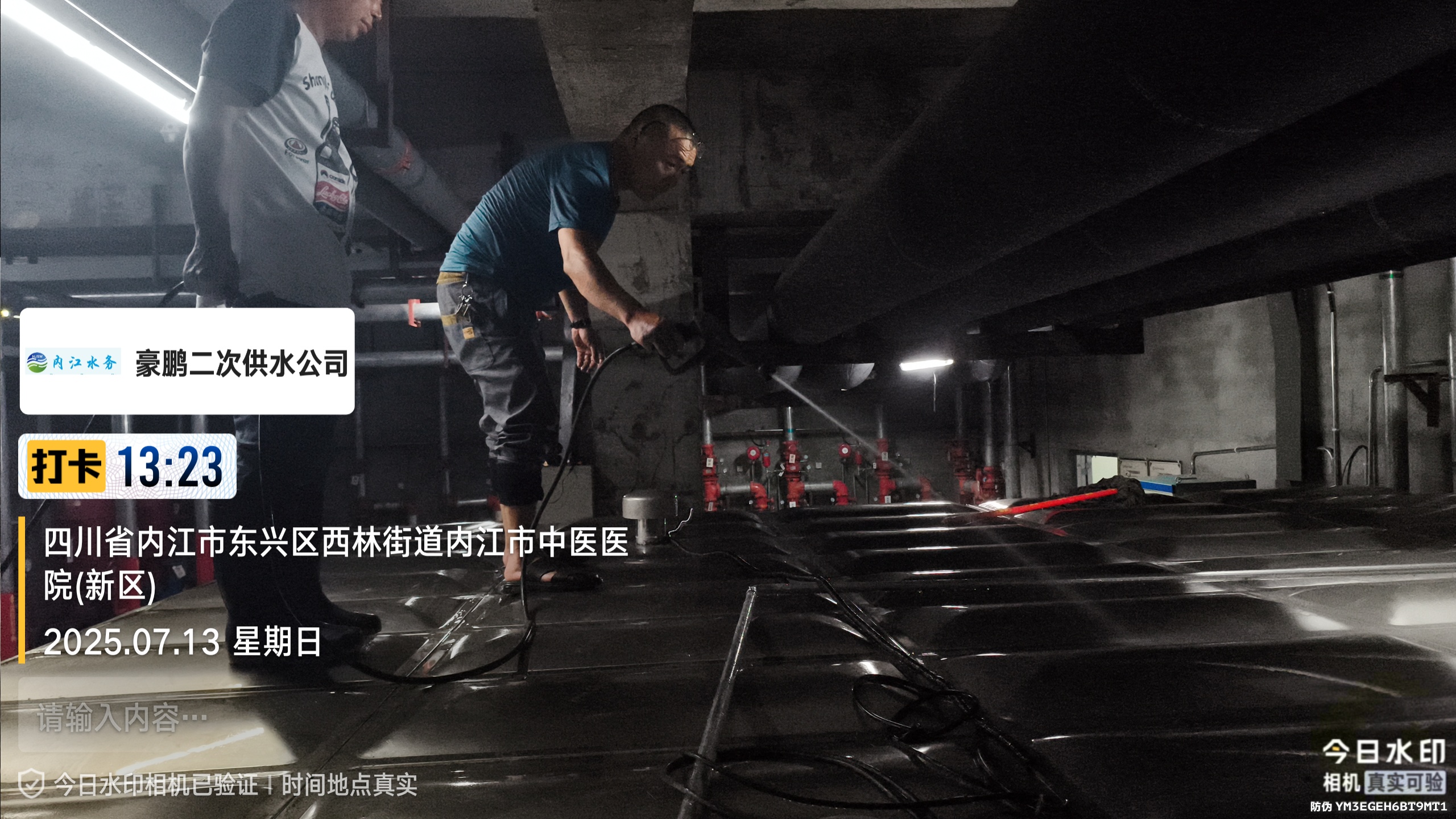 7月13日下午,豪鵬公司業(yè)務(wù)拓展團(tuán)隊(duì)精確把握時(shí)機(jī),利用內(nèi)江市中醫(yī)醫(yī)院(新區(qū))的非診療時(shí)段窗口,高效完成了該院二次供水水箱的清洗作業(yè)。