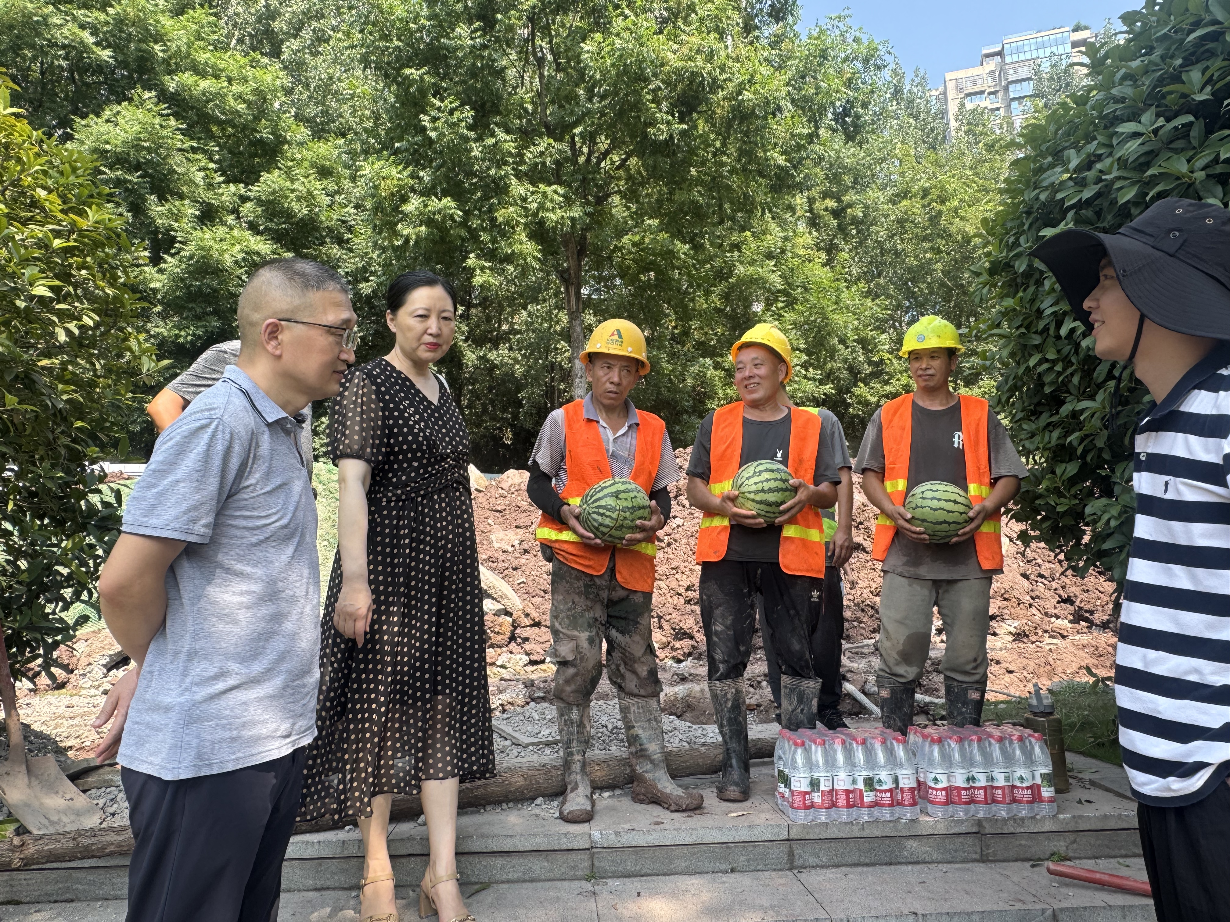 “送清涼”隊伍先后來到管網(wǎng)運行部、供水分公司、污水處理廠等廠區(qū)、部門及施工現(xiàn)場,為堅守一線的干部職工送去西瓜、礦泉水、藿香正氣液等防暑物品。李濤反復叮囑大家,一定要注意防暑降溫,合理安排工作和休息時間,確保身體健康。她強調,公司始終將員工的健康和安全放在首位,特別是在高溫天氣下,更要加強勞動保護,切實保障員工的合法權益。同時,希望大家繼續(xù)發(fā)揚艱苦奮斗的精神,堅守各自崗位,確保公司各項任務圓滿完成。