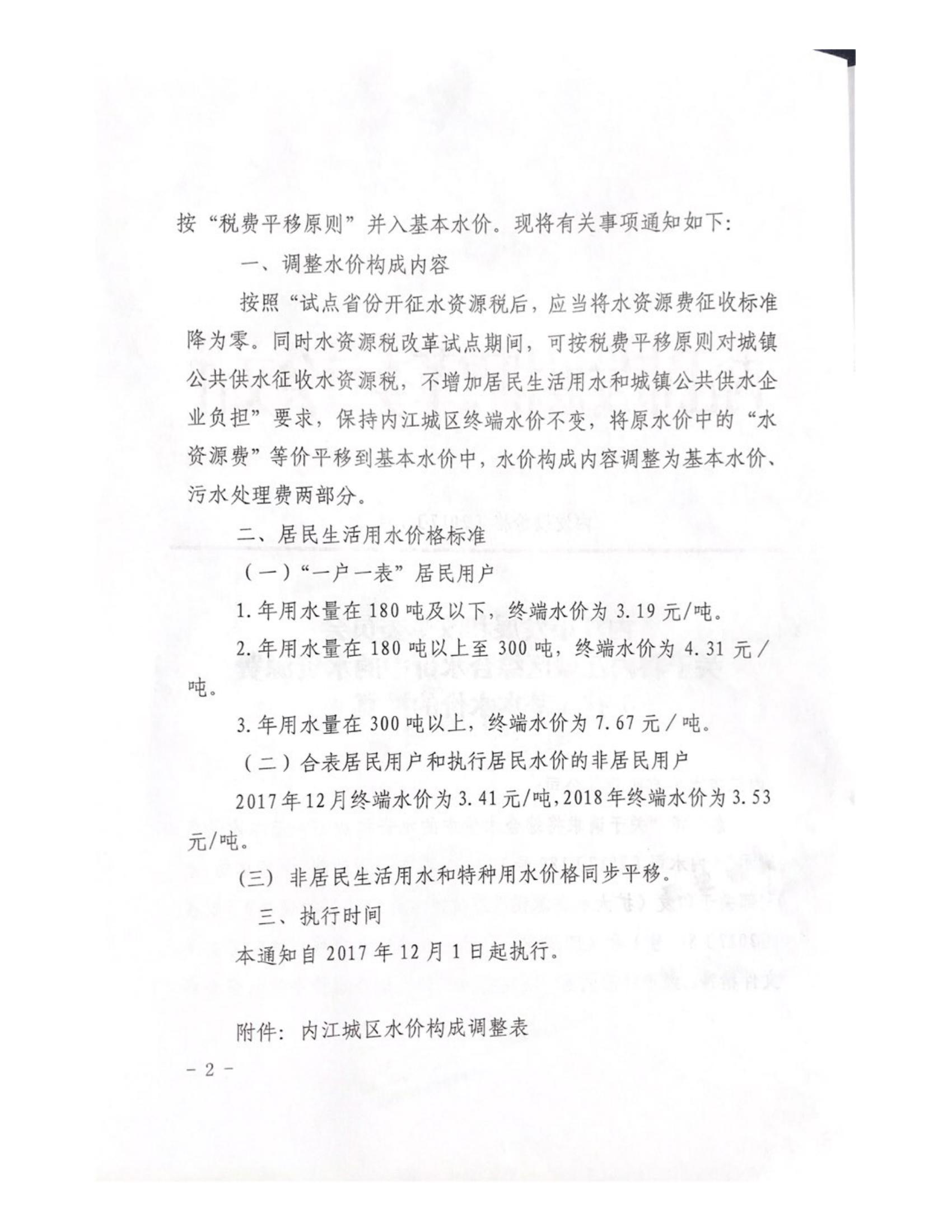 內(nèi)江市發(fā)展和改革委員會關(guān)于將內(nèi)江城區(qū)綜合水價中的水資源費(fèi)并入基本水價的批復(fù)