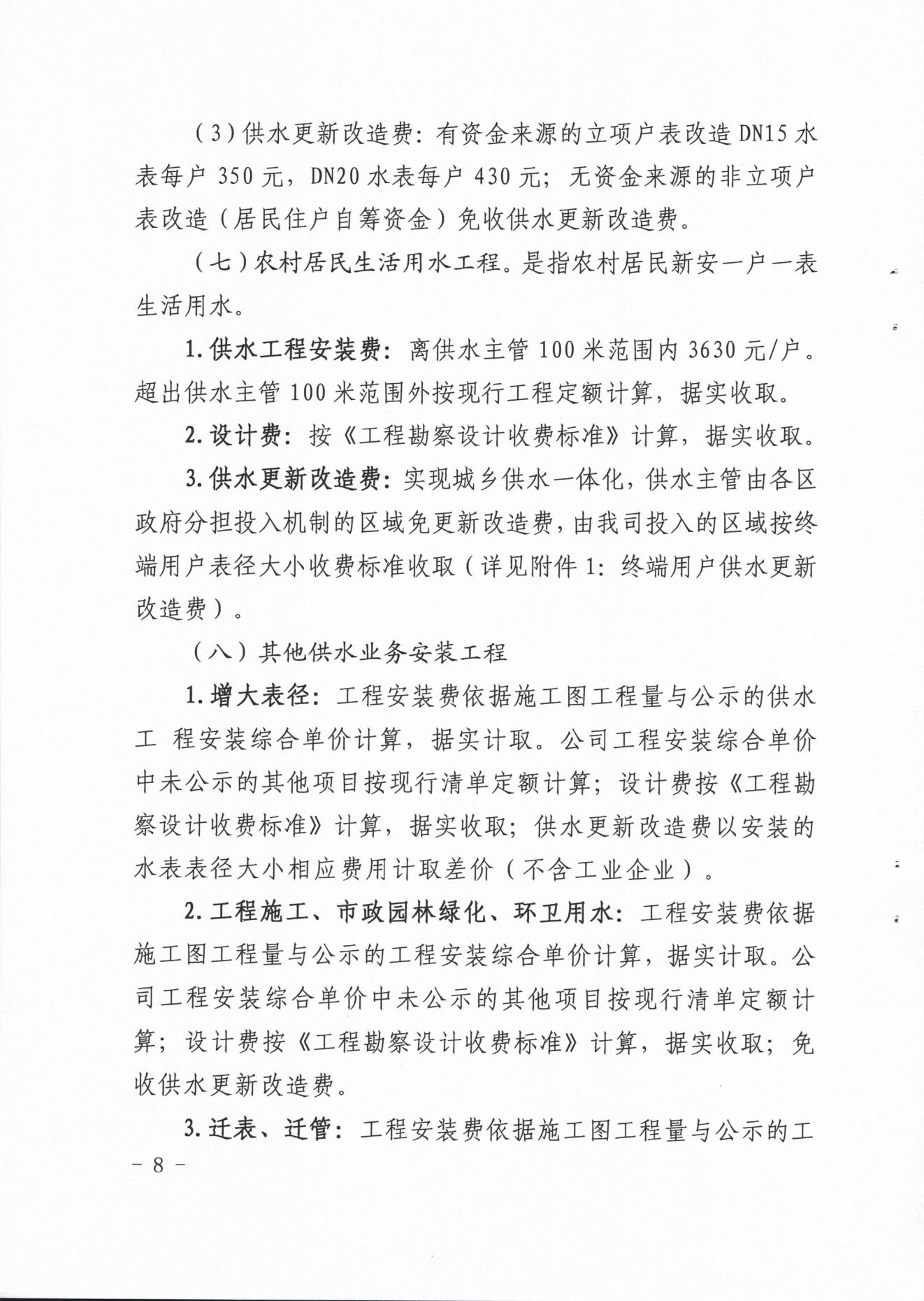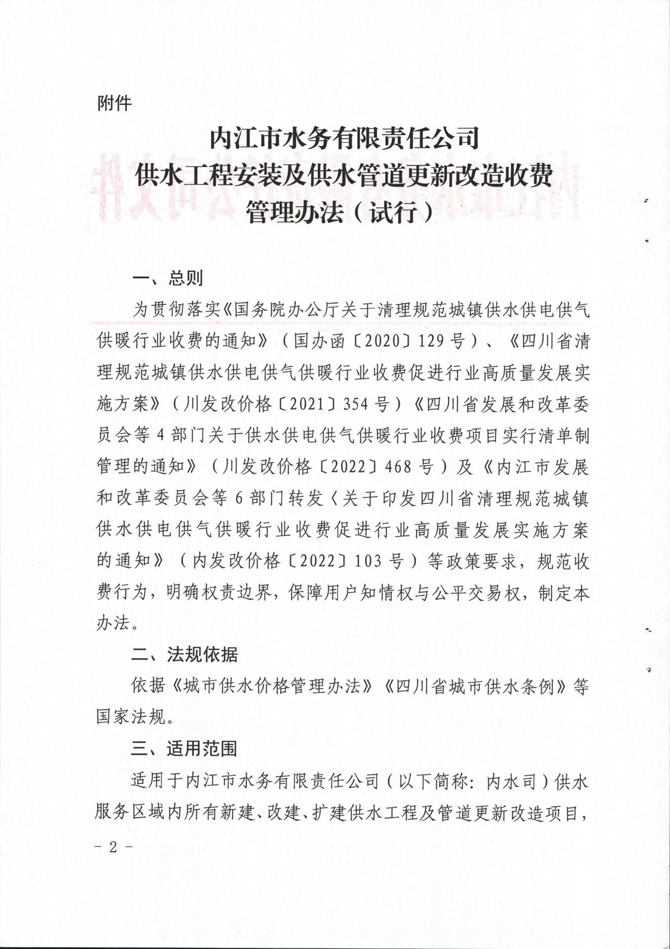 內(nèi)江市水務(wù)有限責(zé)任公司供水工程安裝及供水管道更新改造收費管理辦法(試行)